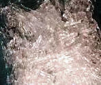 Aided by the intense heat evolved during its dissolution, it is also used as an ice-melting compound. Unlike the more-common sodium chloride (rock salt or halite), it is relatively harmless to plants and soil; however, recent observations in Washington state suggest it may be particularly harsh on roadside evergreen trees. It is also more effective at lower temperatures than sodium chloride. When distributed for this use, it usually takes the form of small white balls a few millimeters in diameter, called prills.